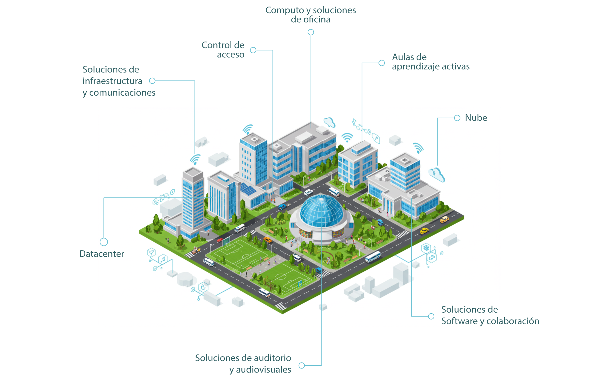 Servicios de nube, ciberseguridad, infraestructura y pago por uso diseñados para potenciar instituciones educativas y entornos de aprendizaje.